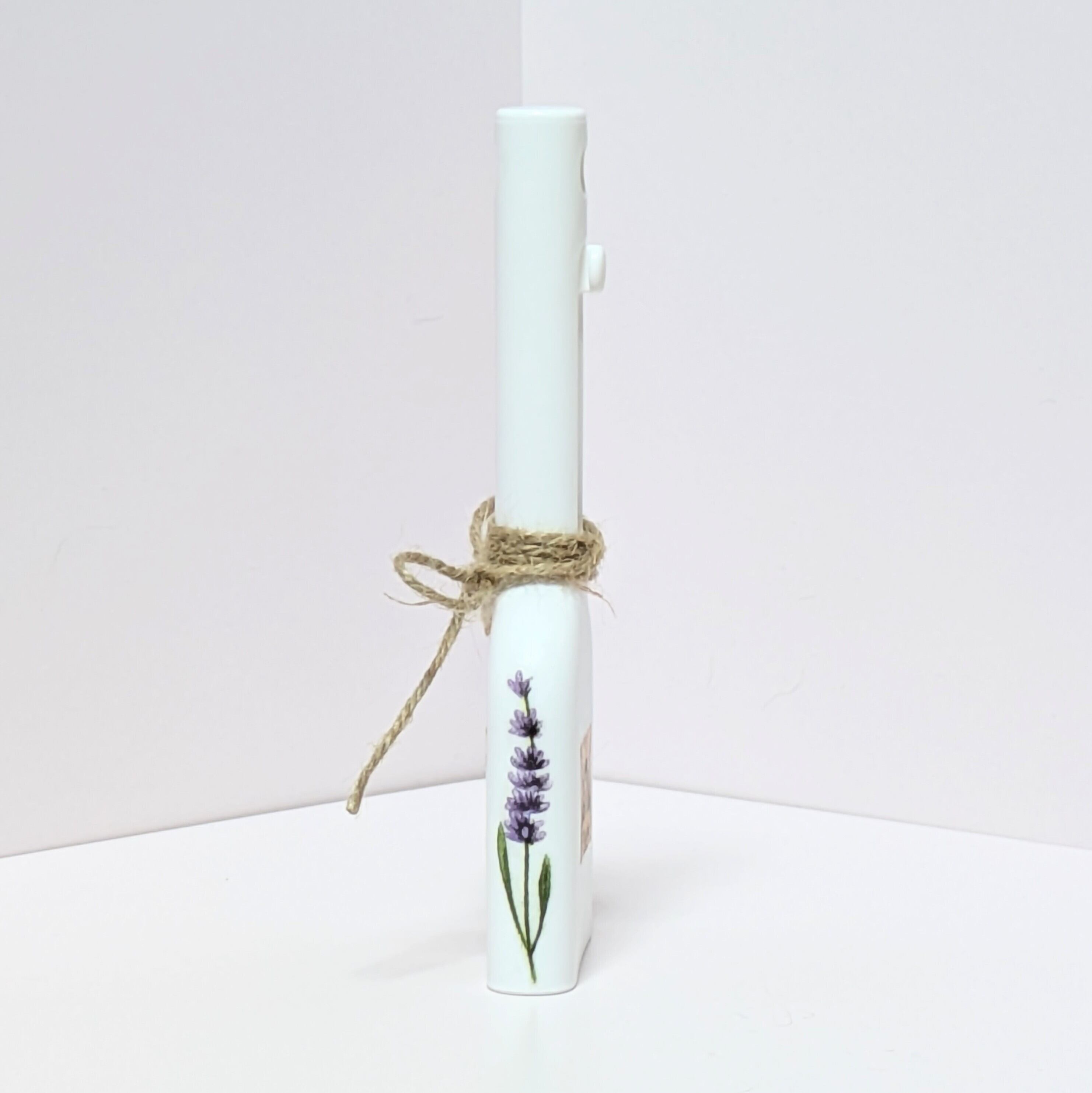 ラベンダー柄をデコパージュした、収納できるお掃除刷毛です。