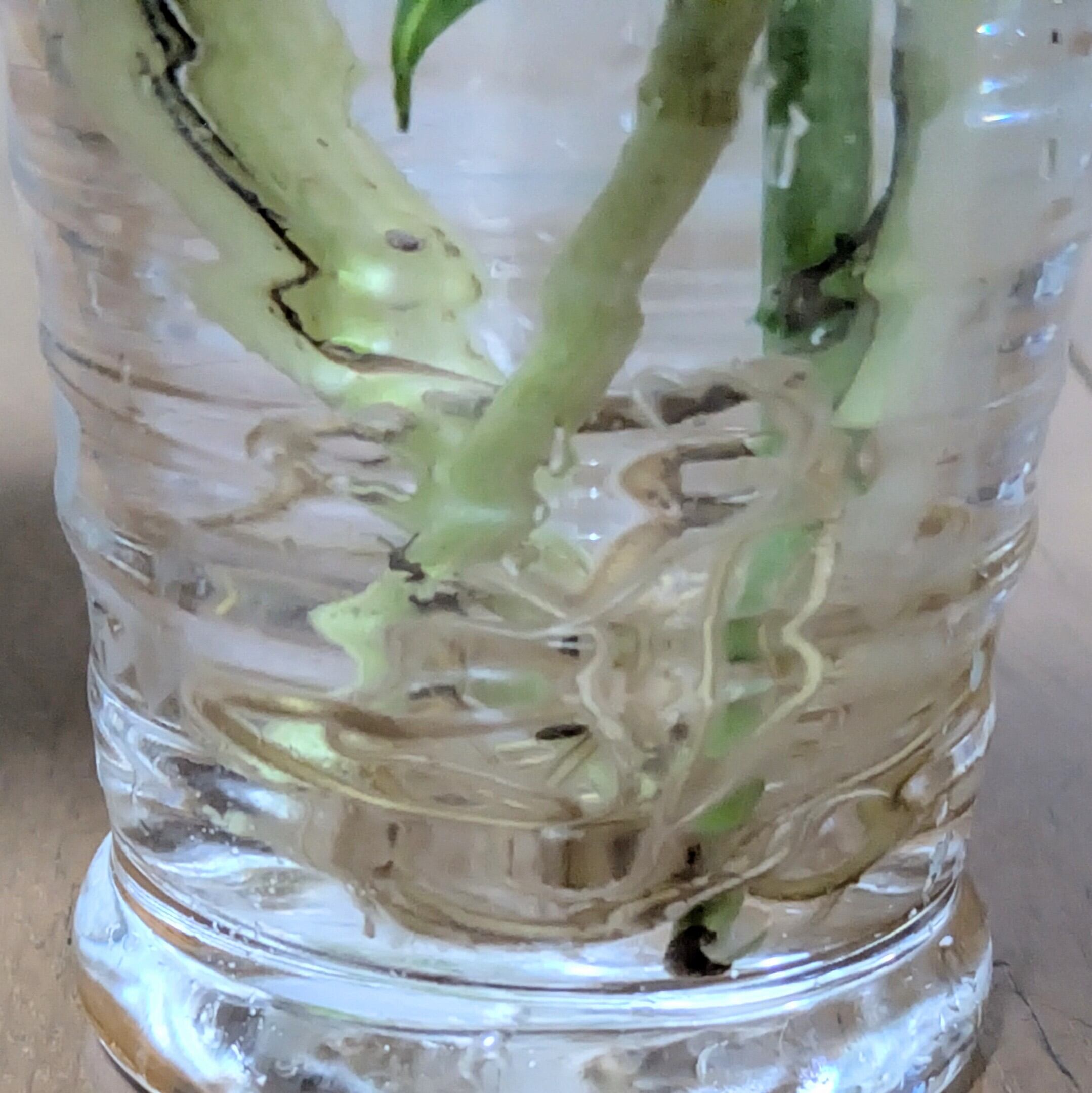 このまま水挿しでも、長いのでカットして増やしても、もちろん土に植え替えても大丈夫です。